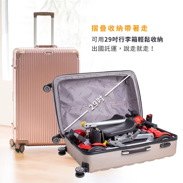 ※備註:因飛機大小不同,是否能置入手提行李空間請洽各航空公司。但因為是行動輔具,仍可做為免費託運行李。